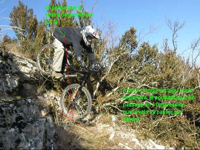 Exemple sur Thomas à Extrème Charray. Ce que je fais, déja quand je peux, je passe le vélo seul sur la marche, si celui ci passe par devant , alors laissez tomber, vous passerez par devant aussi sur le vélo, le centre de gravité étant plus haut avec un pilote que sans. Par contre, si le vélo passe, cela ne veut pas dire que ça ne passera pas par devant avec le pilote, méfiance ! |
