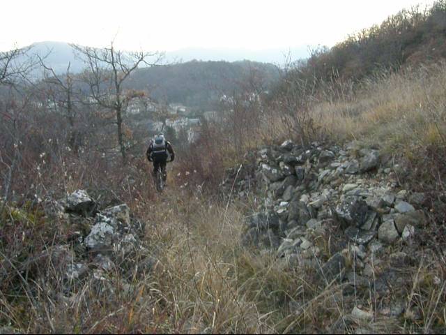 On monte en pédalant, poussant, j'ai prévu de passer par là ainsi on croise la piste principale