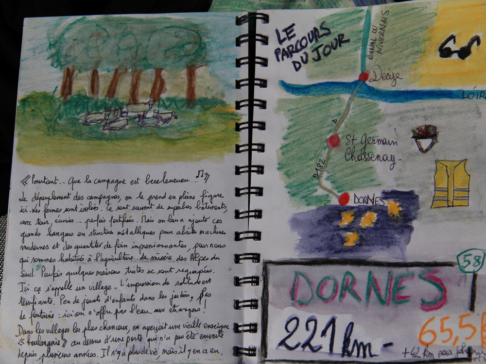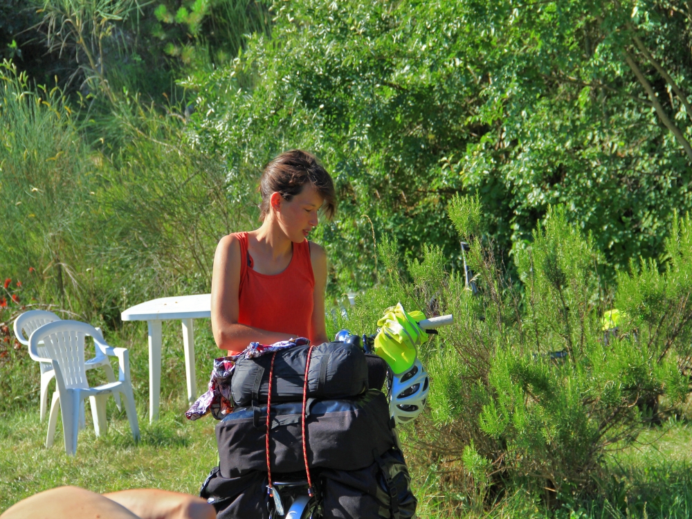 2 gars, 2filles, je les ai rencontrés à Mezilhac, des cyclo- randonneurs avec tout le barda, tentes, casseroles... C'est vrai que ça inspire la sympathie ; je les "branche" . D'où ils viennent , où ils vont ? ...