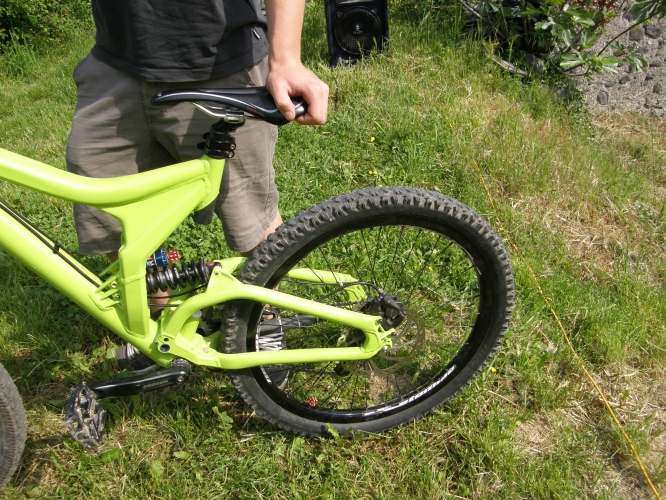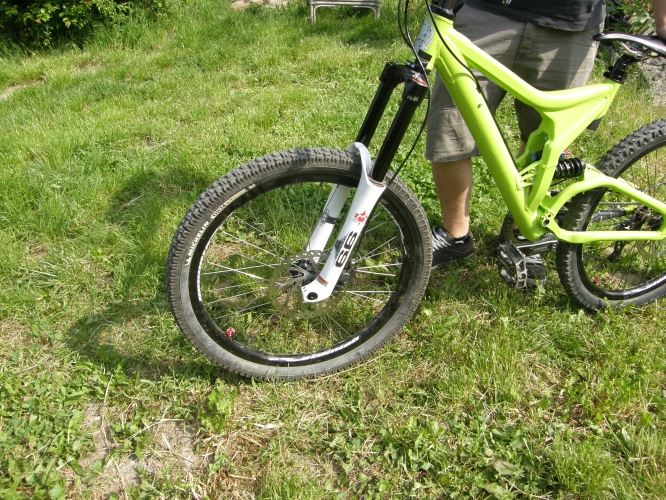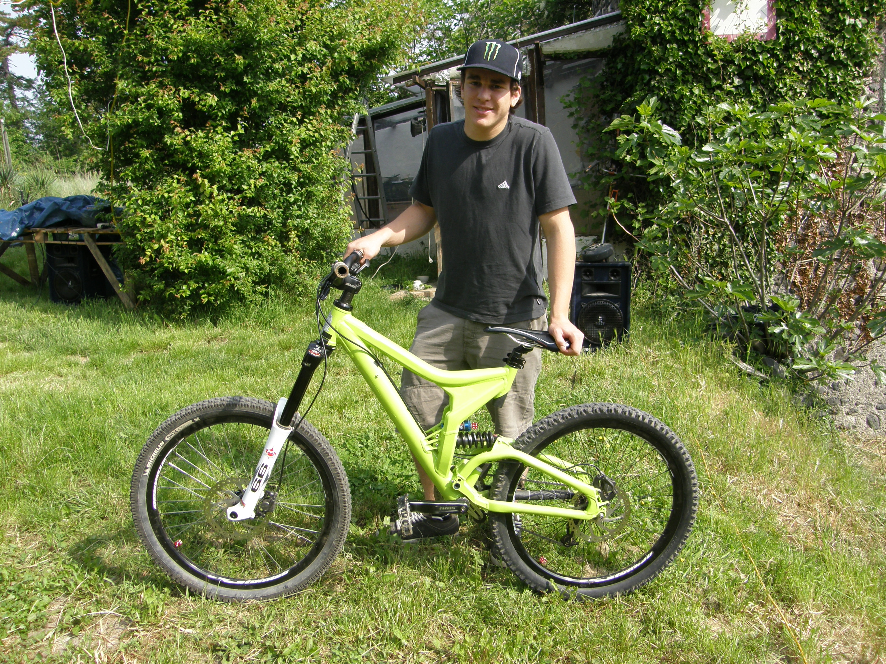 cadre: vraiment bien maniable et super agréable, mais j'ai eu des petits problemes il s'est fissuré j'ai du le faire ressouder. fourche: marzo 66 rc2x 2007 magnifique une foi bien réglée mais mieux vaut lire la notice au début car on peut facilemen faire nimporte quoi avec les réglages. amorto: dhx5 tout simplement super! roues atomlab: bien solides mais un peu lourdes! sinon du hussefelt! Voila c'est un gros montage pour ce vélo mais il reste trés maniable et ya de quoi envoyer du gros! |