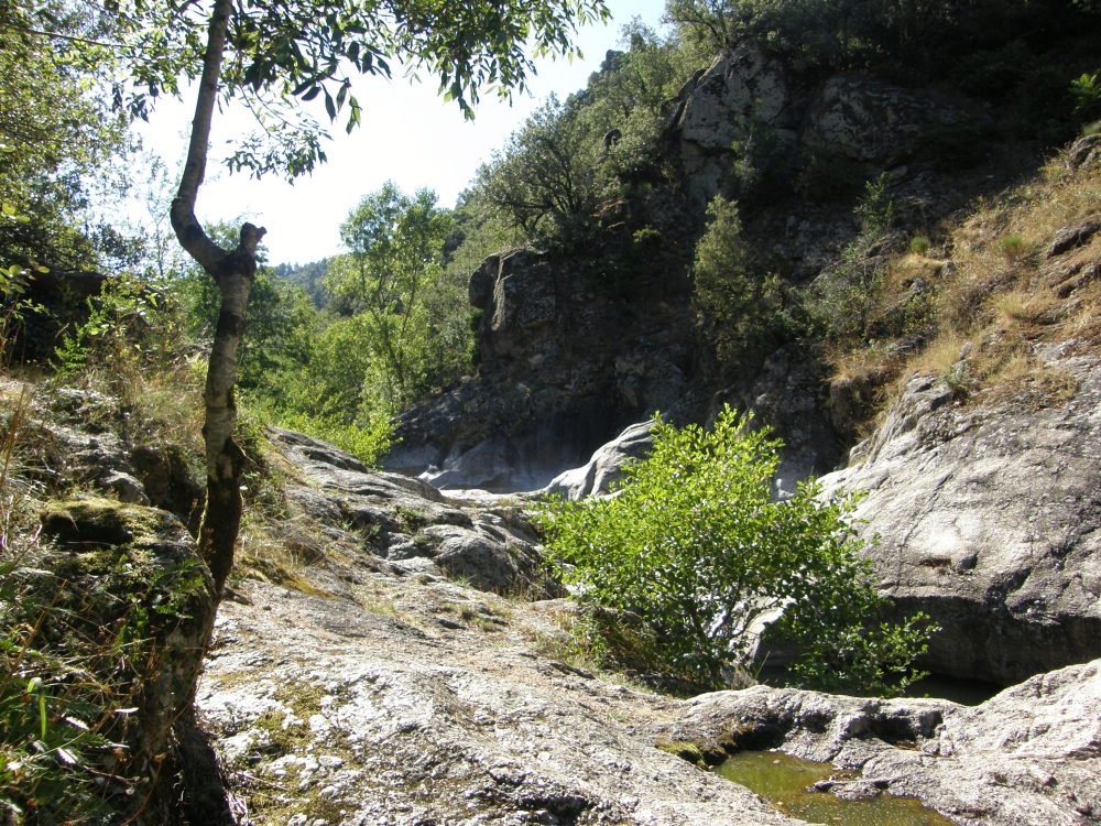 De Chomérac, passer par St Symphorien, la route du col de ..(direction St Julien en St Alban), Les Fonts du Pouzin , Rompon ; puis on passe derrière la Voulte : le col de Viaux, St Laurent du pape. Attention, A St Laurent ne pas traverser l'Eyrieux , rester à gauche (rive droite) , après Royas, avant Semensac, monter (très raide sur 20 m) pour prendre la voie Ferrée , (magnifique vue sur l'Eyrieux !!) filez jusqu'au Boyon , (une petite rivière qui se jette dans l'Eyrieux ) prenez la route (refaite au début ) . Avant Malandine , sur la droite, de quoi garer 2- 3 voitures, et un sentier qui descend : magnifiques petits goures pour le pique nique...